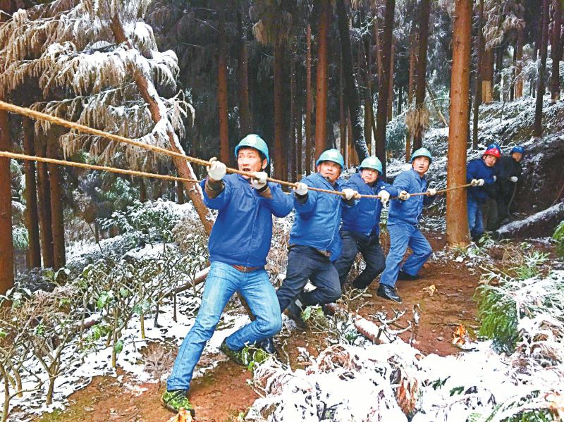 近日气温持续下降,眉山用电负荷急剧增加,国网眉山供电公司积极应对,严密监视电网设备,及时修复受损设备,采取多种措施迎峰度冬。图为2018年12月29日,工作人员在检修电力设施。 黄雷摄
