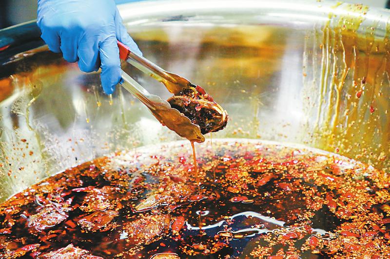 “品兔师”在抽检辣卤兔头。 杨奉焓摄