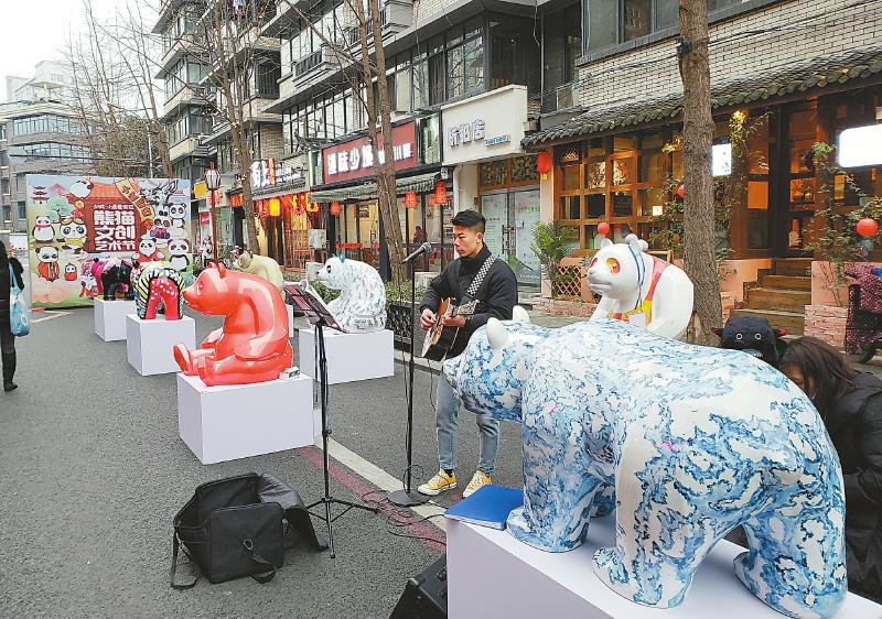元旦期间,青羊区小通巷举办的成都市首届熊猫文创节现场。周孟祺摄