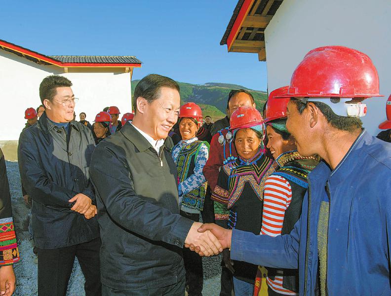 一月二日,省委书记彭清华到凉山州昭觉县普诗乡李子村调研,了解脱贫攻坚工作推进情况,看望慰问在易地扶贫搬迁安置点参加房屋建设的当地彝族群众。本报记者欧阳杰摄