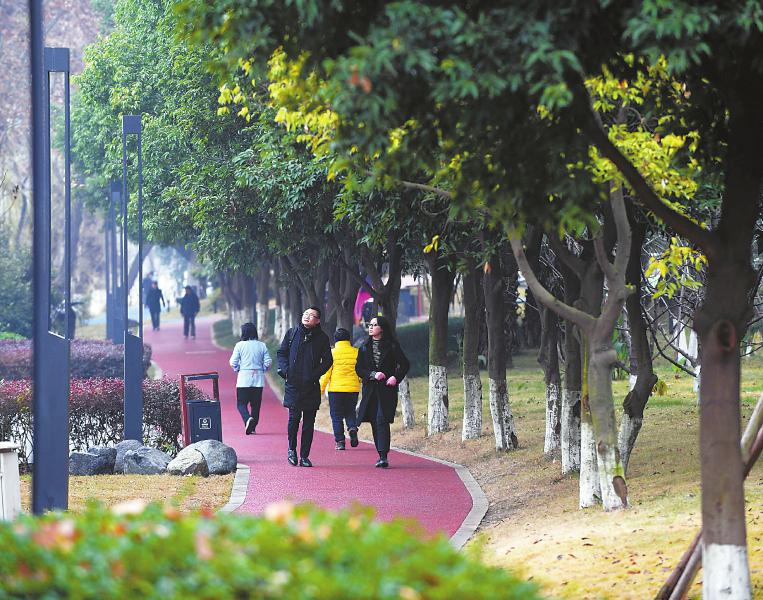 一月三日,成都市成华区杉板桥路沙河城市公园内,市民在健康步道上漫步。本报记者肖雨杨摄
