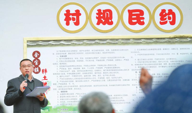 1月2日,在南充市嘉陵区金宝镇胖土地村,嘉陵区金宝镇纪检干部组织村民一起制定村规民约,内容包括社会治安、消防安全、村风民俗、邻里关系、婚姻家庭等方面。 本报记者李向雨摄