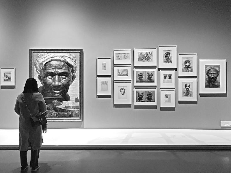 “与时代同行——四川油画邀请展”成博揭幕,观众欣赏画展。本报记者 吴晓铃 文/图