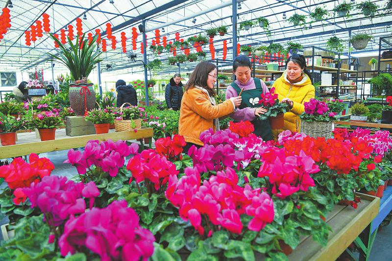 1月29日,德阳市旌阳区孝感镇红伏村一花卉苗木种植园区里洋溢着喜庆的年味。随着春节临近,花卉市场迎来销售旺季,园区内花卉苗木不仅供应本地,还销往市外。 本报记者 肖雨杨 摄