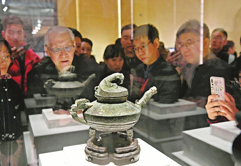 1月29日,“虎鎣:新时代·新命运”展览在国家博物馆开幕,流失海外百余年的西周青铜“虎鎣”首次与国内广大观众见面。据专家研究鉴定,“虎鎣”为西周晚期文物。“虎鎣”原为清宫旧藏,1860年被英国军官哈利·埃文斯劫掠后由其家族收藏。2018年3月,“虎鎣”即将在英国拍卖的消息传出,国家文物局立即开展多方面工作,推动“虎鎣”追索返还祖国。12月,由国家文物局划拨国家博物馆收藏。新华社记者 金良快 摄
