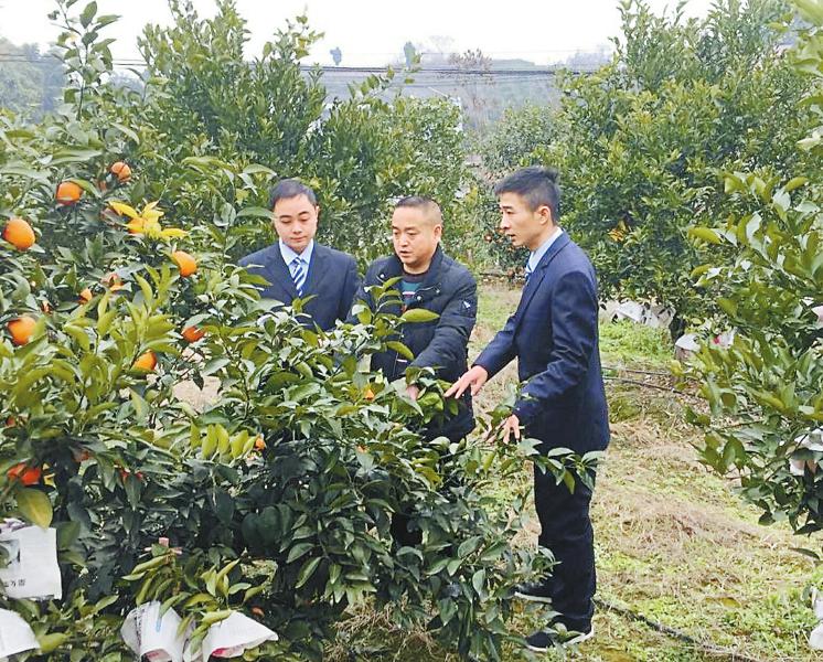 返乡创业获扶助,邮储银行工作人员实地走访柑橘种植基地。