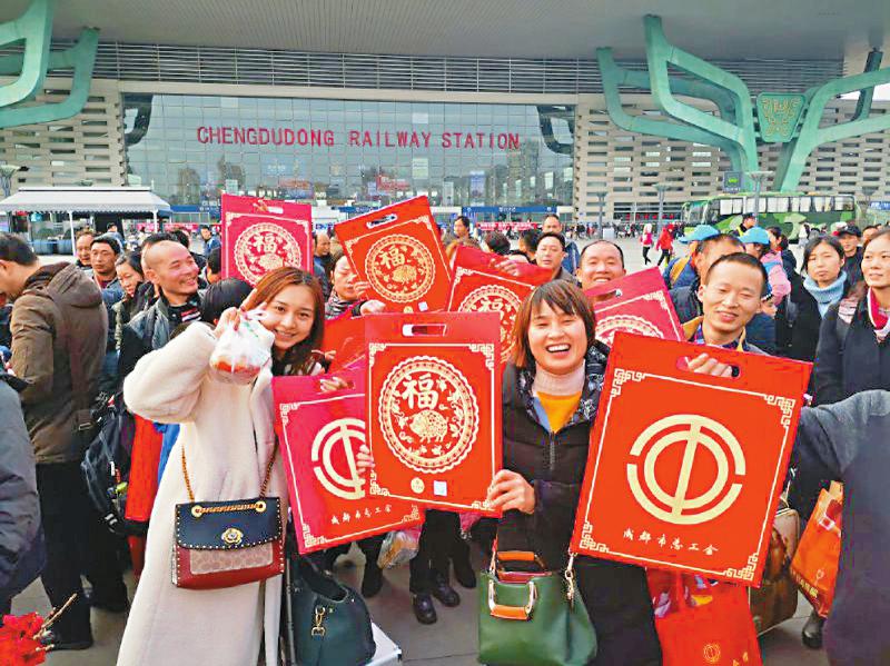 成都市总工会启动农民工平安返乡活动,为农民工提供困难帮扶、法律援助等服务。图片由四川省总工会提供
