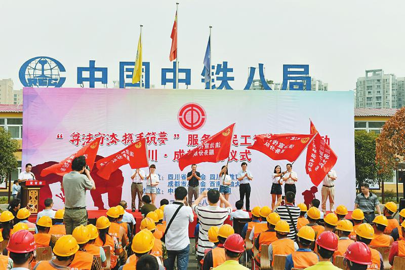 南充“尊法守法 携手筑梦”服务农民工法治宣传行动现场。