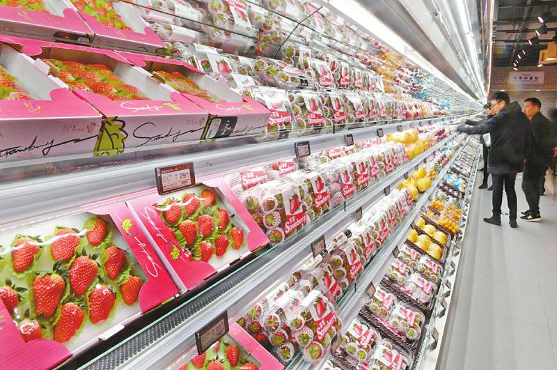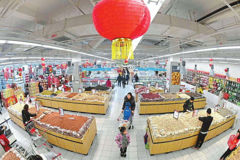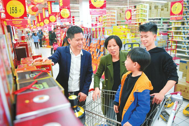1月31日,成都市锦江城市花园永辉超市内,市民在选购年货。 本报记者李向雨摄