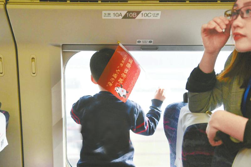 1月27日13:50列车进入四川境内,李小军的小儿子一直看着窗外的风景。