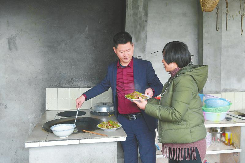 1月28日18:10回到家里的第一件事,李小军和妻子为爸爸做了一顿饭。