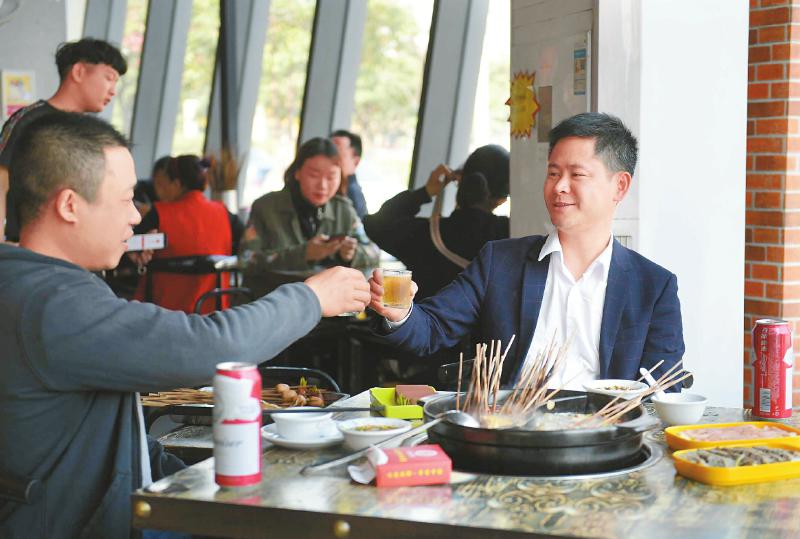 1月26日12:29李小军(右)回家前约绵阳老乡吃一顿串串团年饭。