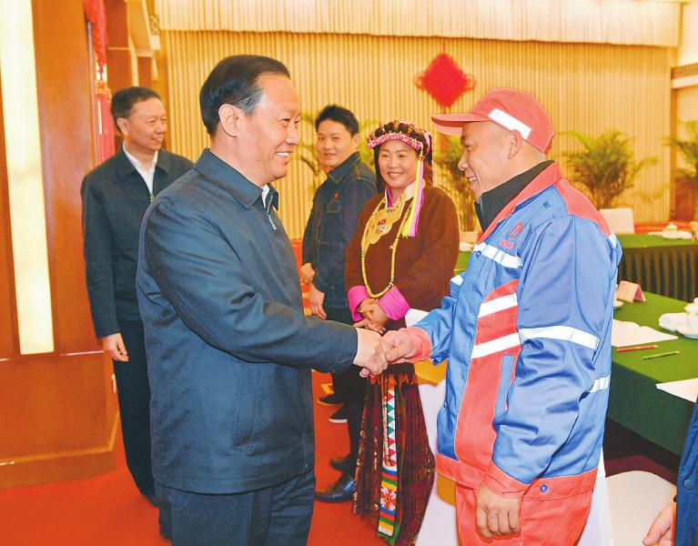 二月一日,省委书记彭清华在成都主持召开农民工代表座谈会。会前,彭清华与农民工代表一 一握手,互致问候。本报记者欧阳杰摄