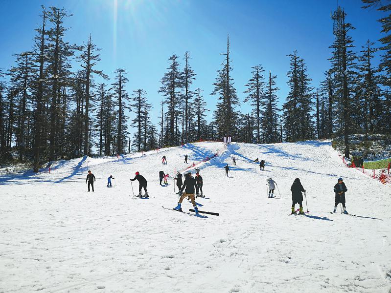 春节临近,洪雅县瓦屋山上冰雪覆盖,趁着冰雪节的举行,不少游客前来赏雪、滑雪,好不热闹。图为1月31日,游客在瓦屋山景区滑雪玩耍。 杨诗雨摄