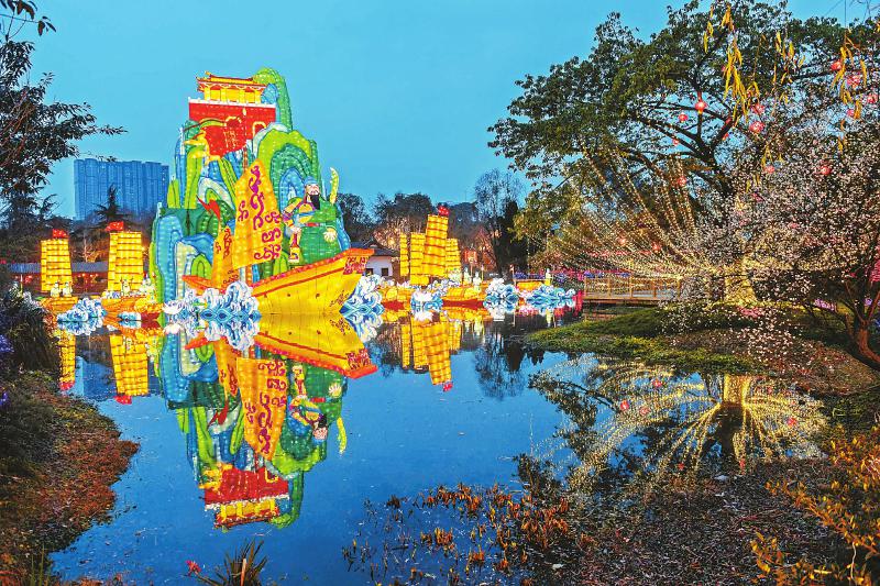 武侯祠成都大庙会的三国灯组格外引人注目。本报记者郝飞摄