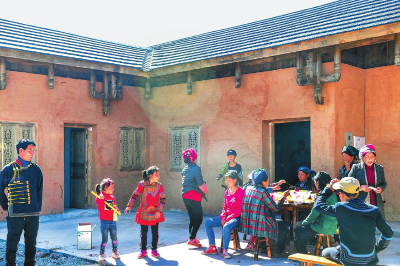 2月4日,昭觉县三河村吉好也求一家第一次到新家“开火”,和亲戚朋友热热闹闹吃顿“团年饭”。 本报记者 杨树 田为 摄