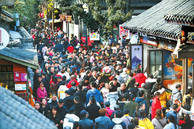 2月4日,成都宽窄巷子人流如潮。 本报记者 肖雨杨 摄