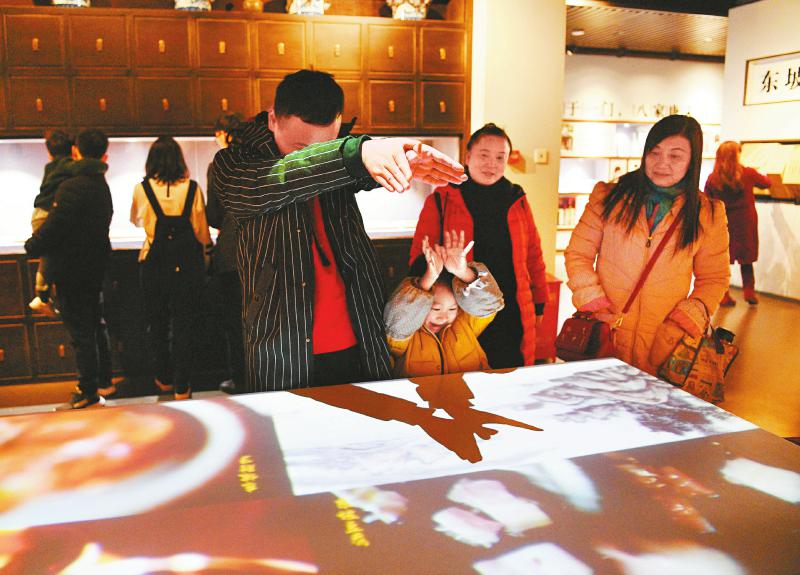 2月5日,游客在眉山三苏祠博物馆进行互动体验。 本报记者 肖雨杨 摄