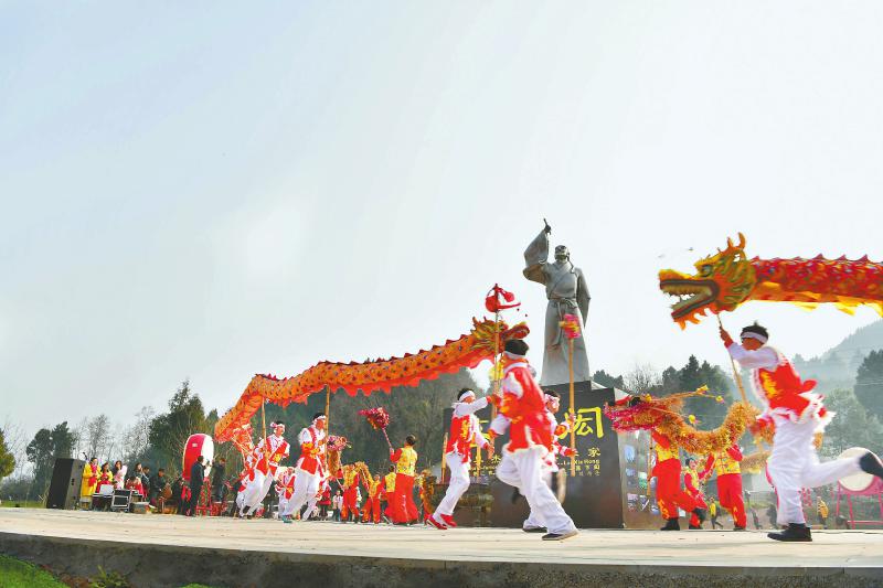 2月5日(正月初一),阆中市桥楼乡洛阳村落下闳广场上,上千名村民和游客举行祭拜“春节老人”落下闳仪式,以朗诵二十四节气歌,表演民俗节目舞草龙、打八仙鼓舞等方式纪念落下闳。 张晓东 摄