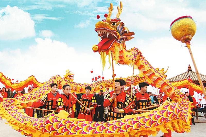 2月5日,仁寿县清水镇共和社区组织舞龙队在广场上表演舞龙节目,欢庆新春。 本报记者 郝飞 摄
