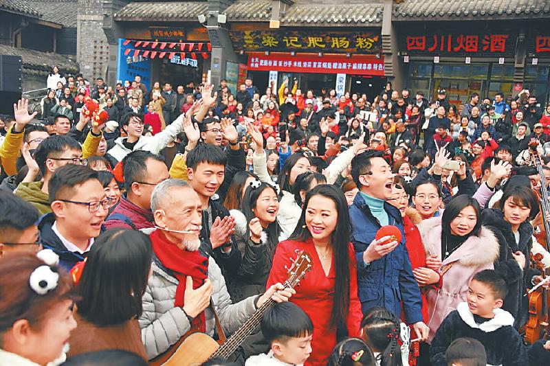 2月7日一早,中央广播电视总台央视综合频道和新闻频道播出新春唱响“我和我的祖国”城市快闪成都篇。本次快闪由台湾著名音乐人陈彼得和四川歌唱家马薇领衔,在成都宽窄巷子街区上演,吸引了上千名市民和游客自发参与。动情的大合唱、悠扬的歌声温暖了无数网友,在网络上持续“刷屏”。