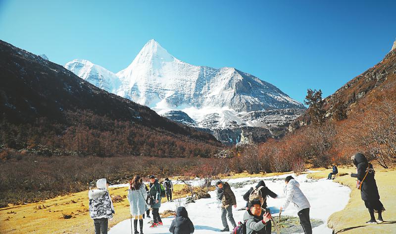 2月7日,正月初三,稻城亚丁景区旅游淡季不淡,雪山、冰河、牧场、星空等冬季美景仍吸引着全国各地的游客前来观赏和体验。 本报记者 刘钧 摄