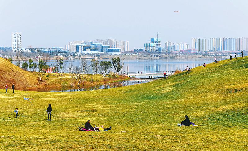 2月7日,成都市民在兴隆湖畔游玩。 本报记者 何海洋 摄