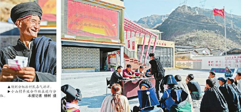 2月9日,喜德县冕山镇小山村39户贫困户早早赶到村委会,村里成立的养殖合作社要给入股的村民们分红。本报记者 杨树摄