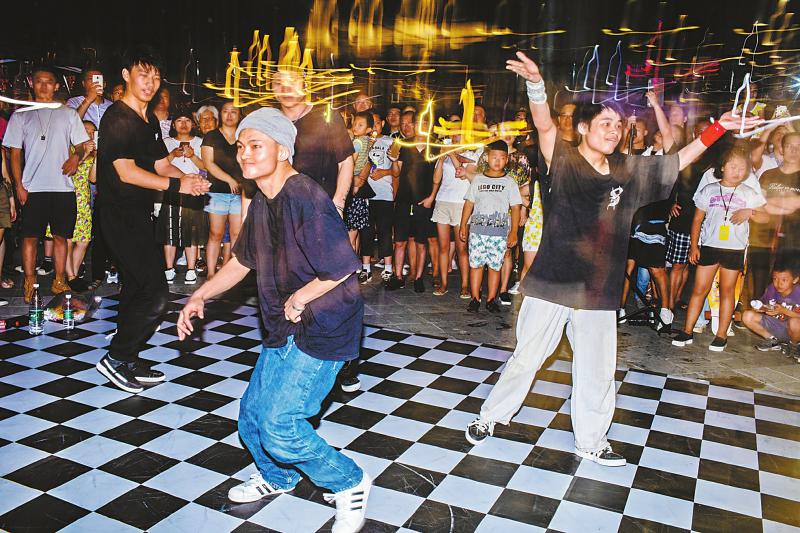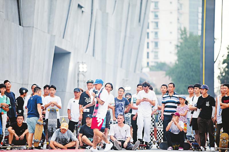 大慈寺滑板广场上的“潮起板不落”主题滑板聚会。