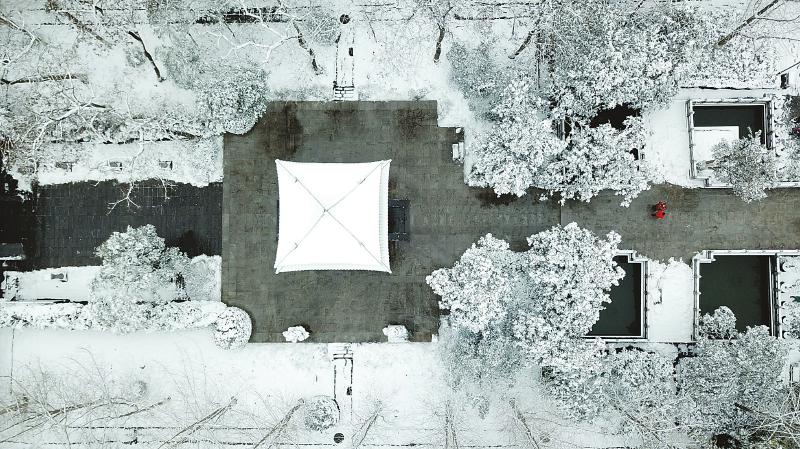 2月9日无人机拍摄的合肥市包公园景色。近日,安徽合肥出现降雪天气。雪后,合肥市包公园内景色别致。 新华社记者 张端 摄