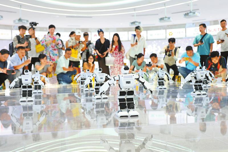 8月29日,四川绵阳科技城新区,“发现镇园之宝 唱响绵阳品牌”网络达人见证绵阳发展——走进产业园区活动中,网络达人们用镜头见证园区发展,体验科技魅力。图为在绵阳科技城新区进行的机器人表演。 陈冬冬 摄(C视觉)