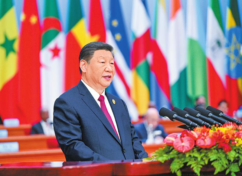 9月5日上午,国家主席习近平在北京人民大会堂出席中非合作论坛北京峰会开幕式并发表题为《携手推进现代化,共筑命运共同体》的主旨讲话。新华社记者 李学仁 摄