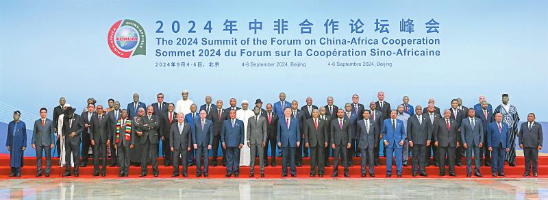 9月5日上午,国家主席习近平在北京人民大会堂出席中非合作论坛北京峰会开幕式并发表主旨讲话。这是开幕式前,习近平同出席峰会的外方领导人集体合影。新华社记者 饶爱民 摄