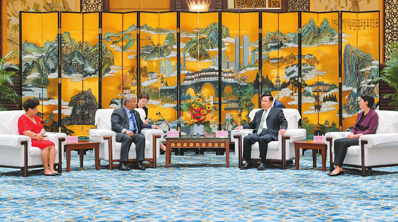 九月六日,省委书记、省人大常委会主任王晓晖,省委副书记、省长施小琳在成都会见塞舌尔总统拉姆卡拉旺一行。四川日报全媒体记者 欧阳杰 摄
