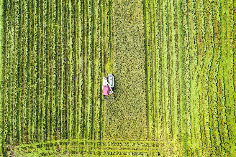 9月7日,是二十四节气中的白露。图为9月6日,南充阆中市柏垭粮油现代农业产业园区内,当地农民正抢抓晴好天气,用收割机收割水稻。今年阆中市栽插水稻28.2万亩,预计总产量可达14.86万吨。