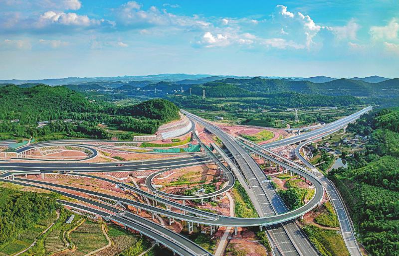 成都至绵阳高速扩容项目节点——德阳市旌阳区新中镇枢纽互通即将全线贯通。该枢纽启用后将使东美大枣、薄壳核桃等当地生态农副产品快速运抵成都、绵阳等城市的农贸市场,有效拓宽农户销售渠道,助力乡村振兴。 王福明 摄(C视觉)