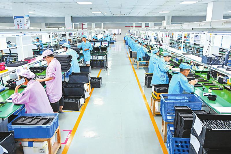 9月6日,在位于眉山市仁寿经济开发区的卓航电子科技有限公司手机组装车间内,工人们正在流水线上工作。连日来,眉山市仁寿经济开发区的各家企业加紧生产赶制订单,满足市场需求。同时,当地政府通过落实各项惠企政策,加大对企业的帮扶支持力度,促进产业高端化、智能化、数字化发展。 潘建勇 摄(C视觉)