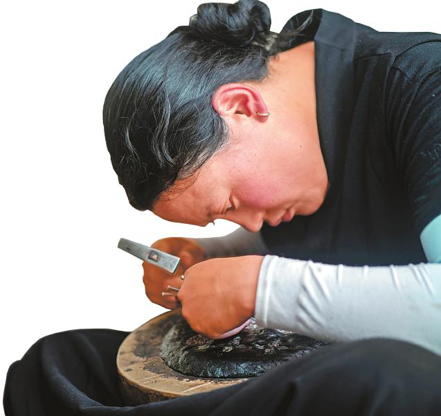 甘孜州德格县麦宿小镇上的手工艺人在加工铜器。四川日报全媒体记者 何海洋 摄