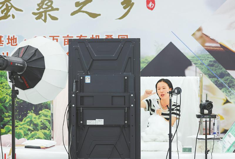 9月10日,凉山州宁南县茧丝绸工业集中发展区,南丝路集团公司的主播正在直播带货。