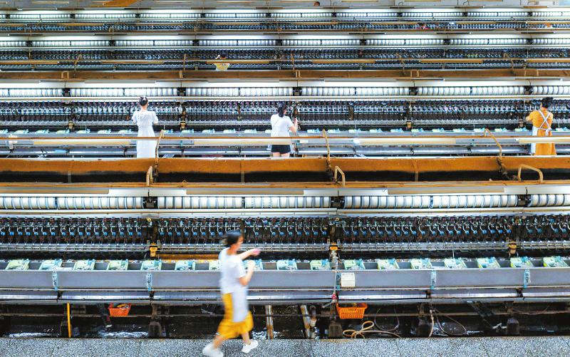 9月10日,在凉山州宁南县茧丝绸工业集中发展区,南丝路集团缫丝车间内机器轰鸣。