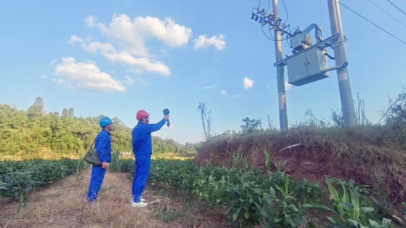国网富顺县供电公司员工正在童寺镇西湖村开展电力巡检、红外测温工作。 雷大勇 摄