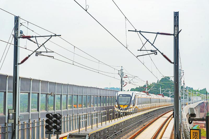 轨道交通资阳线空载试运行经过资阳临空站。 资阳观察 吴昊江 摄