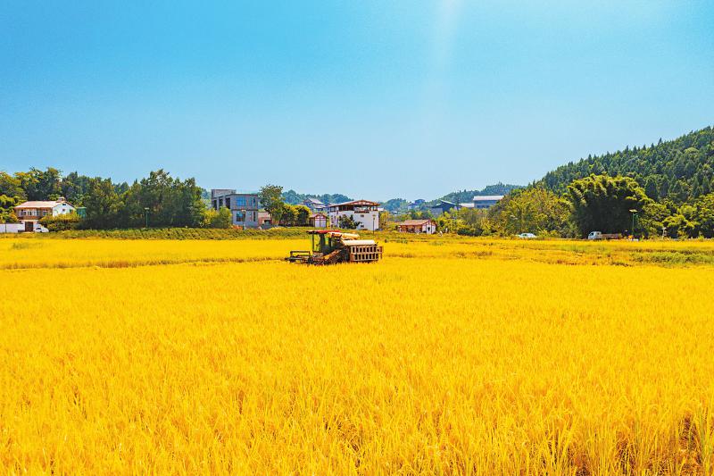 近日,资阳临空经济区临江镇红碑村60余亩集体经济水稻喜获丰收,预计亩产达1000斤,可实现村集体经济增收7万余元。 资阳观察 吴昊江 摄