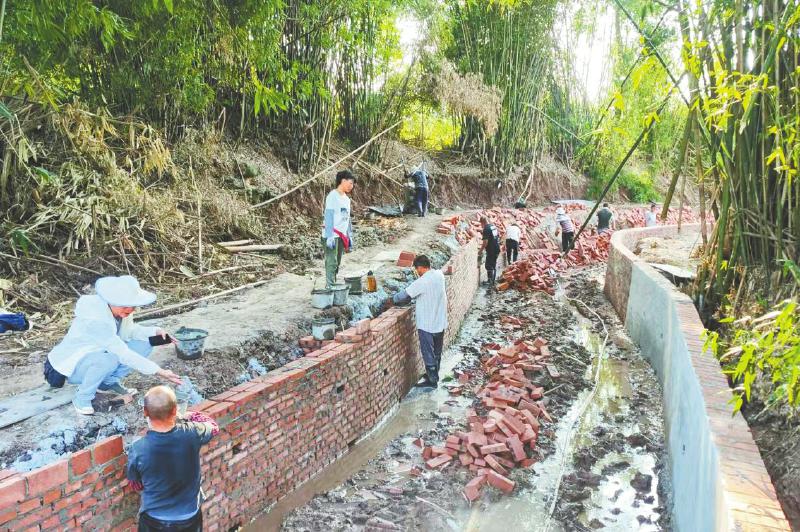 内江市市中区朝阳镇周坡村以工代赈项目施工现场。