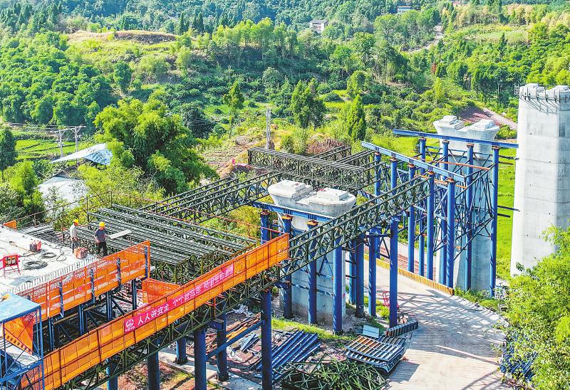 9月16日,在西渝高铁广安市华蓥段何家湾特大桥连续梁施工现场,建设者加紧施工,确保国家重大项目建设跑出“加速度”。 邱海鹰 摄(C视觉)