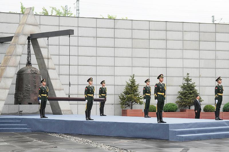 9月18日上午,“勿忘九一八”撞钟鸣警仪式在沈阳“九·一八”历史博物馆残历碑广场举行。 新华社记者 潘昱龙 摄