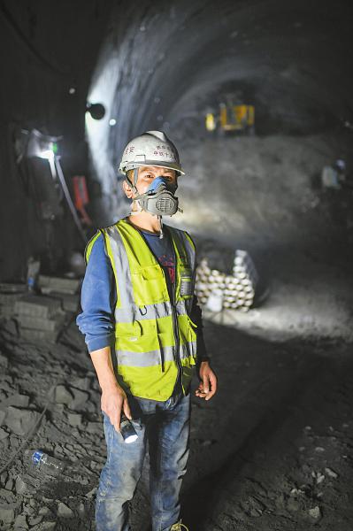 8月13日,值班长陈亮在西宁至成都铁路四川段红原2号隧道内。他每日往返洞内数十次,工作超10小时,主要负责观察施工情况及人员调度。
