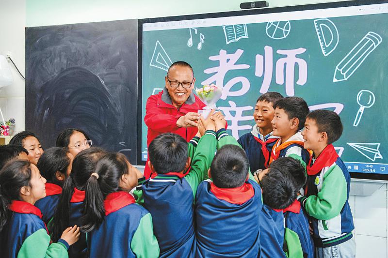 9月10日,2023年到阿坝州红原县城关小学支教的绵阳市盐亭县高渠小学张恩君老师收到了孩子们的教师节祝福。他克服各种困难,为高原孩子带去知识。