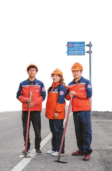 8月19日,甘孜州炉霍县炉霍公路分局三岔河养护管理站,“90后”养护员袁明建(左)、尼马翁姆(中)、兰勋常年驻守,保障国道317线的畅通。