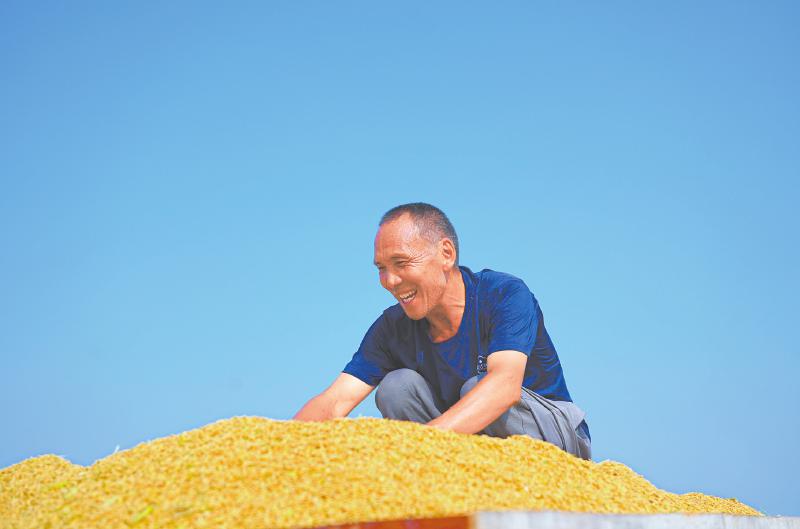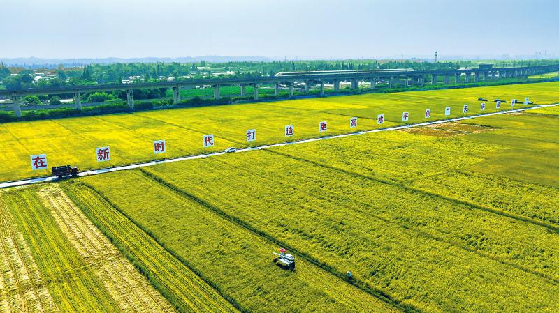 在眉山市东坡区太和镇永丰村,千亩连片水稻开镰收割。侯建民 摄